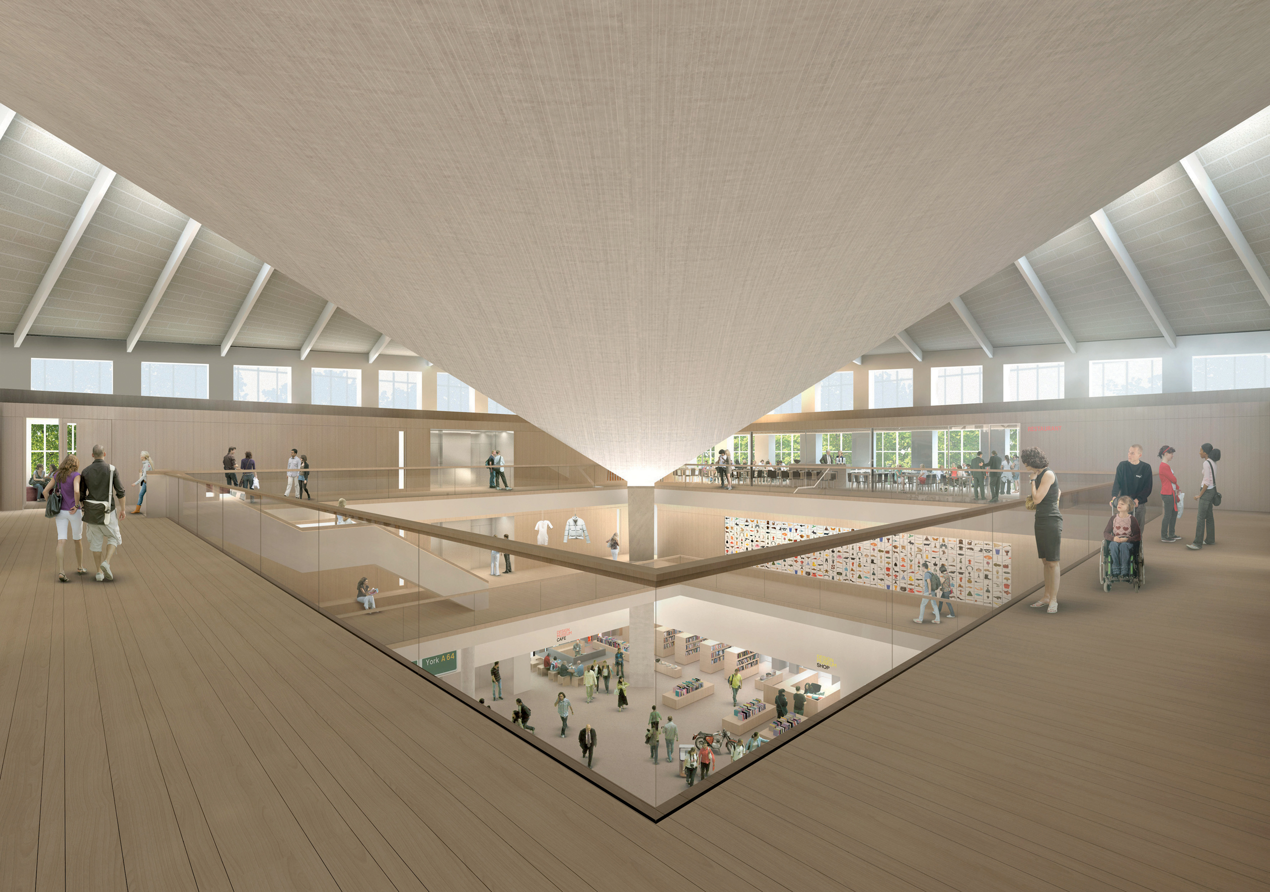 Il progetto insiste sulla valorizzazione della preesistenza. In primo luogo, dunque, la tensione ascensionale della struttura di copertura e il contrasto con il taglio orizzontale dei piani. Per non disturbare il vuoto centrale, che nelle intenzioni rappresenta uno spazio di orientamento fra i diversi piani, ogni altro volume è stato addossato al perimetro delledificio. Le diverse funzioni del museo (inclusi bookshop, caffetteria, ristorante e laboratori) saranno distribuite su cinque piani, con aree espositive dal seminterrato fino allultimo piano, per un totale di circa 10.000 mq, mentre nuove aperture saranno realizzate nella copertura. La trasparenza è infatti laltra qualità su cui punta la riqualificazione del Commonwealth Institute: le entrate vetrate, sui lati nord ed est, contribuiranno a favorire il flusso dei percorsi da e verso lesterno a verde. Per quanto riguarda i materiali dei pavimenti, non stupisce che la scelta del «minimalista» Pawson sia caduta su un numero limitato di elementi, come il legno e il calcestruzzo per il terrazzo.