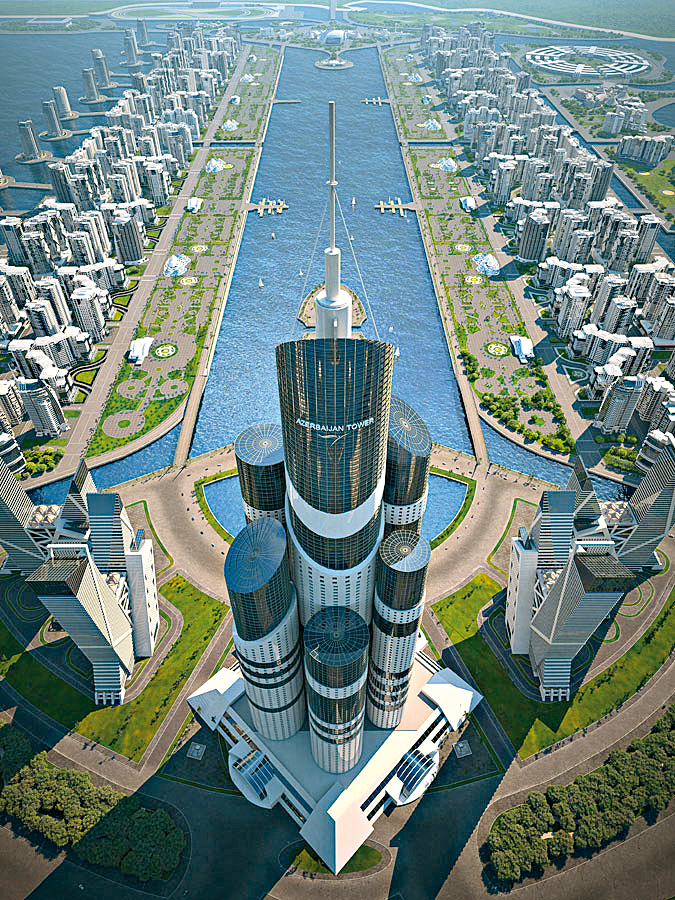 Baku. Tre grattacieli a forma di fiamma (il simbolo del Paese) per annunciare al mondo le nuove ambizioni dellAzerbaigian e della sua capitale, protagonisti di uno sviluppo economico frenetico grazie soprattutto a petrolio e gas naturali. LEurovision Song Contest, la cui finale è stata trasmessa il 26 maggio in quasi cinquanta paesi, è stata la vetrina in cui lintero Azerbaigian ha messo in mostra bellezze turistiche e ambizioni economiche, investendo per levento ben 48 milioni di euro. Più di 100 milioni di telespettatori hanno potuto conoscere una città che, benché ricca di un patrimonio diffuso e oggi ben tutelato (il suo centro storico murato, con il Palazzo degli Shirvanshah e la Torre è riconosciuto dallUnesco fin dal 2000), colpisce per la quantità di progetti architettonici e piani di riqualificazione e trasformazione urbana in corso (si apre in autunno il grande centro culturale progettato da Zaha Hadid) o prossimi a essere avviati. In un paese che, dopo lindipendenza dallUrss del 1991, è stato guidato da due soli leader riconosciuti, Aliev padre e Aliev figlio (Geidar e Ilham), le opposizioni, che avevano tentato di farsi sentire approfittando dellevento, sono state ridotte al silenzio. Tutto è sembrato funzionale a descrivere la città di oggi, e soprattutto quella per gli investimenti internazionali di domani. Intanto, un colossale progetto è stato appena annunciato per le Khazar Islands, a sud-ovest di Baku. Un arcipelago di 41 isole che verrà edificato grazie a 100 miliardi di dollari dinvestimenti e un milione di abitanti previsti. Qui sorgerà, tra laltro, il grattacielo più alto del mondo: 189 piani per 1.050 metri.