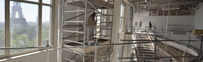 L’aile de Passy du palais de Chaillot abrite respectivement depuis 1937 et 1943 le musée de l’Homme et celui de la Marine. La notion de palimpseste est au cœur de son architecture néoclassique édifiée par les architectes Léon Azéma (1888-1978), Louis-Hippolyte Boileau (1878-1948) et Jacques Carlu (1890-1976) pour l’Exposition universelle de 1937. L’édifice résulte en fait de la mutation du palais du Trocadéro construit par Gabriel Davioud (1823-1881) pour l’Exposition universelle de 1878.