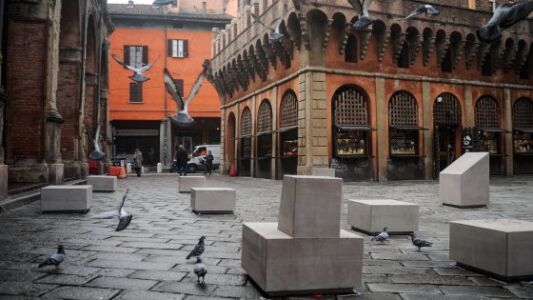 BOLOGNA. Spinte e controspinte per il progetto dello spazio pubblico cittadino. Sulle nuove sedute a ornamento delle piazze bolognesi tanto è già stato il fragore della critica, da spegnere l’originalità di qualunque nuovo corsivo. Forse occorrerebbe procedere anticipatamente alla loro riabilitazione, non foss’altro per gli eventi che hanno saputo generare: il 16 dicembre scorso, per esempio, i nuovi inserti lapidei sotto le due torri sono stati il pretesto per una nuova epifania della goliardia che ha inscenato con un certo seguito una processione alla «Morte del Buon Senso», con tanto di posa di una corona di fiori (…le lapidi ci sono già). Le nuove sedute sono state anche l’occasione per confermare la sollecita premura di Vittorio Sgarbi per la città turrita, con un tweet all’indomani dell’installazione (10 dicembre) a deplorarne il risultato denunciando tanto l’insipienza degli amministratori quanto il silenzio complice di Italia Nostra.