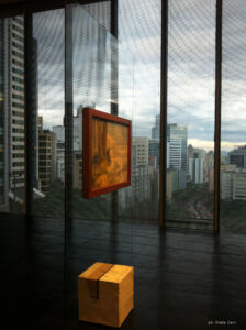 La distesa dei quadri galleggianti, ora in ordine cronologico, circondati dal panorama della città, stordisce i visitatori. Niente assomiglia a ciò che tradizionalmente ci si aspetta da una pinacoteca. Al tramonto e con i tendaggi aperti, la sala offre un’esperienza visiva e spaziale unica, grazie al dialogo tra la luce naturale e l’oro delle cornici, all’integrazione tra interno ed esterno e ai riflessi sui cristalli. Non stupisce che sia un riferimento per altri allestimenti in giro per il mondo e che sia così caro ai paulistani.