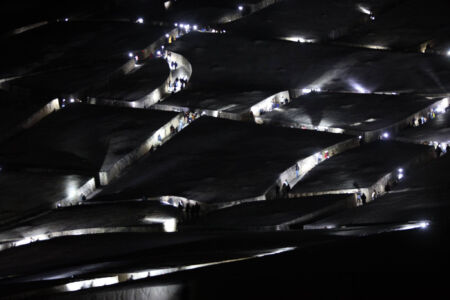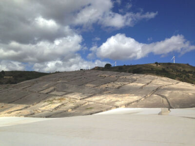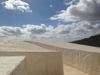 Ma il “Grande cretto” di Gibellina è un’opera di dimensioni ben più straordinarie che, nelle intenzioni di Burri, avrebbe dovuto coprire 86.000 mq. Attraverso il potente gesto artistico, le macerie dell’antico insediamento assumono nuova vita e significati e prende forma un’opera che, a scala territoriale, appare come un immenso sudario che si distende sulla collina mentre, al visitatore che lo percorra, si rivela come un bianco labirinto i cui meandri trasudano ancora della vita interrotta dal tragico evento del terremoto.