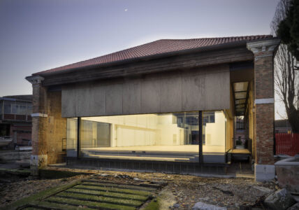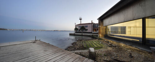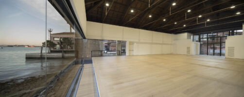 Il recupero dello Squero s’inserisce in quest’ottica di conservazione e innovazione ai fini di una valorizzazione reciproca: reversibilità e riconoscibiltà del nuovo intervento sono i principi fondativi della trasformazione, dove tutte le nuove parti si accostano allo Squero storico nel rispetto della struttura originaria e nella sottolineatura delle potenzialità paesaggistiche. In tal senso, la parete vetrata verso l’esterno garantisce uno straordinario sfondamento sulla laguna, aprendo la vista verso i Giardini della Biennale e l’isola del Lido e recuperando il legame con l’acqua laddove lo scivolo permetteva l’ammaraggio delle imbarcazioni. Dati anche i vincoli di tutela del complesso, il nuovo elegante volume s’inserisce entro il perimetro dell’edificio secondo il principio della “scatola nella scatola”, rispettando la fisionomia del fabbricato storico e giocando sull’affascinante ambiguità del rapporto interno-esterno.