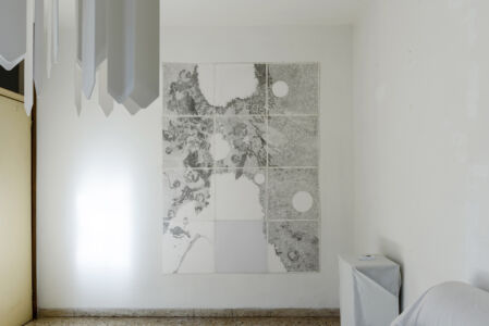 Gli oltre 30 autori, di diversa provenienza – tra cui Fabio Alessandro Fusco, Luca Galofaro, Beniamino Servino, Davide Trabucco, Michael Abrahamson, Socks, Fala Atelier, Charles Young, Andrew Kovacs, Graham McKay, Shinichi Waki – sono stati invitati a rendere materica la propria ricerca nata digitalmente, tentando una sfida allo spazio del piccolo appartamento di Gardella. Il risultato allestitivo talvolta può apparire ingenuo, caricato di eccessiva sintesi teorica o mancante del perfetto riscontro materico (Waki) oppure molto lontano dal nucleo da cui la ricerca si sviluppa (AQQindex). In altri casi invece, gli autori riescono bene a restituire senso e forma fisica all’apparato speculativo che nutrono online (Galofaro, Servino, Young).