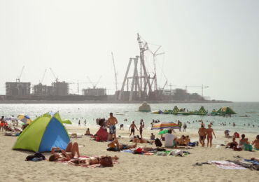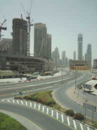 Un’altra importante centralità sta sorgendo in posizione intermedia tra Dubai Marina e il Creek, nella zona di The Dubai Mall; al momento è il più grande degli Emirati Arabi Uniti. Dentro c’è un enorme acquario con diversi squali e un souq più vero del souq vero; in alternativa si può usare una pista di pattinaggio incastrata tra i ristoranti e i negozi di moda italiana o francese. Dentro tutto è iper condizionato, fuori ci sono 44° e la città è un deserto infuocato, abitato solo dalle squadre di operai degli enormi cantieri sempre aperti. Il grattacielo di Burj Khalifa domina splendente ed inaccessibile; di fronte, nel cantiere delle torri Sky Views, si legge che ci lavorano 3.547 operai: quando arrivo in visita, una squadra di 100 sta “scasserando” il solaio di un piano interrato di parcheggi.