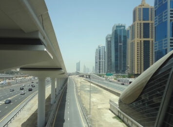 Dubai appare all’improvviso dal mare e dall’alto dell’aereo sembra Los Angeles. Si atterra perpendicolari alla costa, al di sotto scorre il fiume di macchine bianco e rosso della Sheikh Zayed Road, una strada a 16 corsie che fa da diga con i suoi grattacieli schierati tra il mare e i quartieri residenziali a bassa densità. Nel tessuto urbano esteso a perdita d’occhio, si scorge il Burj Khalifa; nonostante i suoi 828 metri sembra una piccola torre di mattoncini Lego, in mezzo all’oceano luminoso dei distretti finanziari che lo circondano. Il Dubai Intenational Airport è immenso e lungo, il controllo dei passaporti ed il ritiro dei bagagli avvengono in una specie di centro commerciale luminoso e pulitissimo, un biglietto da visita molto esaustivo per capire in quale “nuovo mondo” si è arrivati.