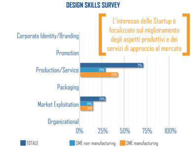 La domanda di design delle startup operanti nel settore è ancora saldamente legata al miglioramento degli aspetti produttivi e dei servizi di approccio al mercato