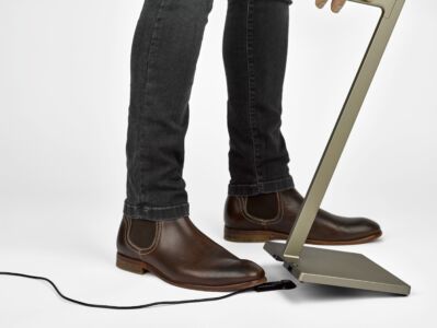 Pesa poco più di 1 kg nella versione da tavolo e 1,5 kg nella versione da lettura. Progettata da Rupert Koop, è dotata di un corpo che emerge formando un angolo di 15° con la base, in cui sono collocate batteria ed elettronica. Grazie alla giunzione triassiale, la testa può essere inclinata di 270° ed è dotata di un sensore per il controllo gestuale posto sulla sua parte superiore.