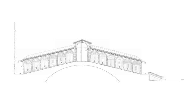 L’allestimento del ponteggio ha previsto la predisposizione di un’area di cantiere sopraelevata, senza interferenze con i percorsi pedonali pubblici. I lavori, suddivisi in più lotti, hanno comunque garantito la percorribilità della struttura per l’intera durata dell’intervento. Tutte le lavorazioni nel sottarco, a terra sulle pavimentazioni, gli scavi e i trasporti del materiale di risulta sono state concentrate nelle ore notturne.