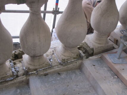 Due sono stati gli interventi di carattere strutturale: quello sulle balaustre e quello sui paramenti murari delle botteghe. Per consolidare il parapetto del ponte sono state utilizzate mensole in acciaio duplex e rinforzi in trefoli e fasce di carbonio. L’intervento sui paramenti murari, volto a rendere nuovamente solidali il muro in pietra con quello in mattoni, è stato invece eseguito con trefoli in basalto. È importante sottolineare che gli interventi realizzati con materiali compositi soddisfano i requisiti della reversibilità e non danneggiano le porzioni storiche dei manufatti: tecniche di restauro tradizionali e innovative convivono felicemente nell’intervento in questione.