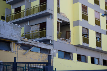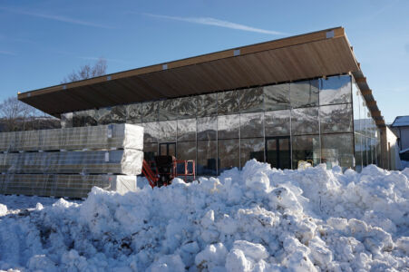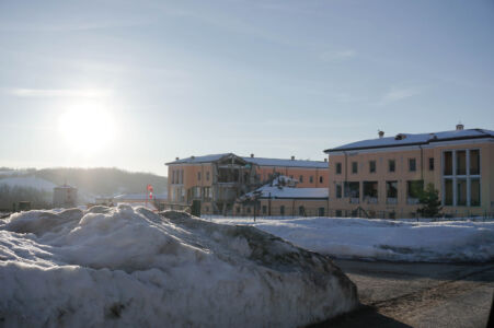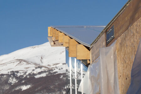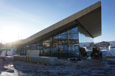 La terra voleva questa volta la sua voce e, invece della mezza new town a sfondo commerciale, che se fosse qui o a Vimercate probabilmente poco cambierebbe, avrebbe gradito un esempio didascalico, pedissequo e più amorevole. Magari Boeri poteva esprimersi con uno stile chiaro come a Milano nel “Bosco verticale”, facendo architettura come arte ed estetica oltre che come tecnica e tecnologia, e soprattutto si poteva far parlare l’edificio in altezza. Il lato ingegneristico è impeccabile e, anche, semplice in maniera disarmante. Si dimostra che la prefabbricazione in legno con fondazione comune (cordoli in cls armato) resiste bene; al punto che le nuove scosse hanno significato ben poco per la struttura, la quale si è “mossa” come è giusto e non perdendo mai la sua efficacia sebbene non ultimata (assenza di giunto tra le vetrate strutturali). Se ci mettiamo però un filo di malizia un edificio multipiano, magari con la stessa funzione ma con il respiro di edificio palazzina, avrebbe espresso da solo una nuova strada percorribile e avrebbe gridato in faccia ai cementificatori, di cui l’area è piena, la via della redenzione del flessibile e sostenibile legno.