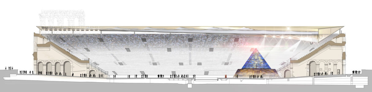Le critiche che si possono rivolgere a ciascun progetto andrebbero in realtà portate a monte della stessa ipotesi di una copertura, all’utilizzo smodato del monumento, generosamente concesso per settimane agli zuccheri e ai ligabuoi, e conseguentemente gravato da tonnellate di sovrastrutture, apparati scenici e impiantistici rispetto ai quali nessuno sembra stracciarsi le vesti. Il senso del velario tecnologico sta – dovrebbe stare – in un necessario ripensamento complessivo dell’approccio all’anfiteatro, mantenendo viva e vitale la funzione di spettacolo per cui è nato, sapendo compendiare storia e progetto.