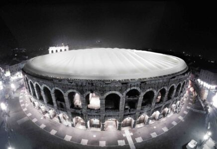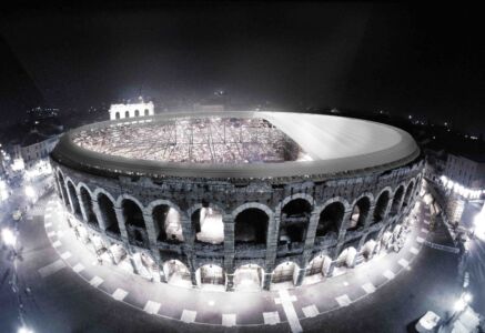Il concorso internazionale di idee per la copertura dell’Arena di Verona – finanziato da Calzedonia e vinto dai tedeschi Schlaich Bergermann Partner e von Gerkan Marg und Partner – pone interrogativi sul rapporto tra uso e tutela del monumento