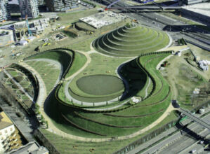 Ma il punto di forza in un luogo della città in trasformazione è certamente il piccolo parco (370.000 mq) che Charles Jencks ha opposto all’incantesimo della piazza ideata da Gino Valle al Portello. Jencks ha saputo dare un segno urbano e antiromantico al suo parco – dove pure esiste persino un laghetto – con l’uso spregiudicato dei colori delle piante e la modellazione delle colline ispirata alla pittura toscana dei primi decenni del Quattrocento.