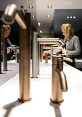 L’occasione biennale è quella di poter raccogliere in un solo luogo, lo storico quartiere fieristico, il meglio delle proposte, soprattutto da un punto di vista tecnico, di quanto si pensa e si produce nel campo dell’esperienza del bagno, dei servizi tecnologici agli edifici, dell’energia, delle tecnologie del trattamento dell’aria e delle fonti rinnovabili. Programma ambizioso ma doveroso per un settore che genera un giro di affari annuale di oltre 55 miliardi, secondo gli organizzatori, e in crescita rispetto al 2016. Come sempre economia e politica vanno a braccetto, tanto è vero che ISH è stato anche luogo d’incontro e scambio politico in un momento molto delicato dei rapporti internazionali: la Turchia, terzo espositore dopo Germania e Italia, è stato il paese partner di questa edizione con 140 aziende presenti. Quindi, se negli anni pari e per il Design il bagno è sempre protagonista a Milano, l’International Sanitary and Heating tedesco è la grande fiera internazionale leader del settore e le migliori aziende sono presenti con novità e proposte.
