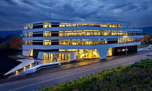 Non lontano da Stoccarda, nella regione Mittlerer Neckar in forte espansione, Esslingen è stata interessata da un’importante trasformazione urbana, con la riqualificazione della vecchia stazione merci e dell’area industriale adiacente. L’ampio lotto in oggetto termina a ovest in un’area chiusa di forma triangolare, stretta tra la linea ferroviaria, la strada e i terrazzamenti coltivati a vigneto. Qui, lo studio Fritzen28 ha progettato un edificio attento agli aspetti ambientali del contesto, valorizzato dalle soluzioni luminose progettate da Nimbus Group, azienda con sede a Stoccarda, leader nel settore delle tecnologie di illuminazione a LED (presente nell’edizione appena conclusa della Milano Design Week).