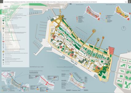 Tuttavia, nessuno dei partecipanti al concorso pare aver tenuto nel debito conto gli strumenti di piano attualmente in vigore. Così come il concorso si sovrappone in parte con il processo in atto di riqualificazione del waterfront. Da un lato, imbastito attraverso il concorso per un Centro servizi polivalente aggiudicato nel 2009 a Guendalina Salimei (cantiere avviato ma fermo alle demolizioni, contro una prevista fine lavori a giugno 2017!). Dall’altro lato, soprattutto, “Open Taranto” si sovrappone allo Studio di fattibilità (inerente “Interventi di protezione costiera, riqualificazione e rigenerazione dell’affaccio a mar Grande della Città vecchia di Taranto”) commissionato dall’Autorità portuale nel 2016 a un gruppo di professionisti guidato da Rosario Pavia e Matteo Venosa, tra i vincitori del Premio Urbanistica dell’INU.