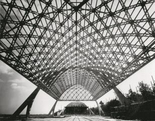 Leggere insieme i due volumi permette uno sdoppiamento del punto di vista. Il primo sguardo, quello di Gargiani e Bologna, è insieme storico e tecnologico-costruttivo. I 14 capitoli di cui si compone l’elegante pubblicazione non approfondiscono tanto la figura di Nervi, quanto invece le sue costruzioni. Emergono, come protagoniste indiscusse, le forme architettoniche – ardite, monumentali o sorprendenti – rese possibili dalle innovazioni tecniche: dallo stadio di Firenze (1933) ai progetti degli anni ’70, è un racconto cronologico, rigoroso e dettagliato, le cui fonti principali sono i documenti di progetto e di cantiere. Anche le immagini (in tutto oltre 550) indugiano poco sulla spettacolarizzazione estetica, restituendo invece – insieme ai disegni, alcuni inediti, frutto di ricerche d’archivio – le fasi costruttive. Le uniche figure umane presenti sono i lavoratori impegnati a posizionare ferri di armatura o a montare casseri, spesso piccole silhouette che sottolineano, con il salto di scala, la grandiosità degli spazi progettati da Nervi. Anche i testi rispondono a un criterio di ricerca scientifica, in una collana dedicata specificatamente al cemento e ai suoi progettisti più illustri.