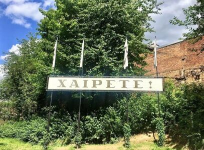 Terminiamo da dove forse si sarebbe dovuto iniziare, secondo i curatori: la dismessa stazione della metropolitana Kultur Banhof alla quale si accede attraverso un container collocato di fronte alla vecchia stazione centrale. Spazio di grande intensità, anche se forse troppo forzato nel suo carattere dismesso, ospita varie installazioni e ci congeda facendoci uscire alla luce sui vecchi binari ove ci saluta la scritta Xaipete! (“Benvenuti” in greco), opera del greco Zafos Xagoraris, cartello oggi usato nei campi di accoglienza per profughi in Grecia, il quale riecheggia altri cartelli posti un tempo all’ingresso di altri campi.