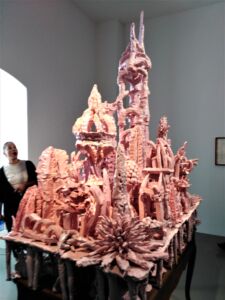 È una mostra fatta di temi politici ed economici, antropologici e sociali, di gender e xenofobia, ma alla fine l’arte prevale. Ad esempio la bella collezione dell’EMST, il Museo di arte contemporanea di Atene, esposta al ribattezzato “BEINGSAFEISSCARY” (Essere sicuri fa paura) Fredericianum, collezione allestita con grande perizia e rigore, ci fa rimpiangere di non aver frequentato di più e meglio l’arte contemporanea greca per “Imparare da Atene”, sottotitolo di Documenta. Poco distante la Neue Gallerie, in spazi istituzionali di grande eleganza, espone raffinate opere che indagano le drammatiche relazioni fra arte e nazismo.