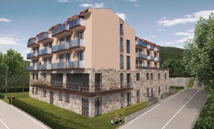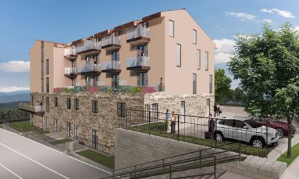 L’esterno dell’edificio riprenderà la struttura originaria. Il solido basamento, con piano terra e seminterrato, sarà rivestito in pietra locale; i piani superiori, con finiture a intonaco, presenteranno finestre a tutt’altezza. La copertura presenta una falda tradizionale, mentre le finestre della mansarda seguiranno una spezzata, creando una continuità tra muratura e copertura.