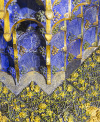 Quando nel 1883 l’impresario barcellonese Manuel Vicens dà l’incarico a un Gaudí appena laureato di costruire la casa di vacanza di famiglia, la Vila de Gràcia era una meta ambita dalla borghesia cittadina per trascorrervi i mesi estivi. In questo suo primo progetto residenziale, il giovane Gaudí getta le basi di quello che sarà il suo particolare modo di intendere l’architettura, intrinsecamente legato alle arti plastiche, a partire dall’attenta osservazione della natura, con un linguaggio impregnato di simboli che si andrà accentuando con gli anni. Influenzato dall’architettura mudejar promossa in quegli anni da Owen Jones, l’architetto catalano introduce un personalissimo mix stilistico mai visto fino a quel momento, con l’ornamento protagonista, pur restando ancorato alle tecniche costruttive tradizionali. La libertà con cui affronta il progetto in ogni dettaglio si riflette nella grande varietà di motivi ornamentali vegetali (altamente simbolici) con cui riempie la casa: le foglie di palma riprodotte nella recinzione di ferro battuto o i tagete gialli sulla ceramica che riveste le facciate rimandano alle essenze presenti nel giardino che circonda la casa, mentre i cespugli di more o la passiflora riprodotti su soffitti e pareti manifestano una conoscenza del simbolismo religioso in seguito così preponderante nell’opera gaudiana. Se del “trencadis” a cui l’architetto ci ha abituato in numerosi interventi non c’è ancora traccia, l’ampio uso della ceramica ornamentale è già evidente: 14mila pesetas il conto pagato dal signor Vicens per le piastrelle, una fortuna per quei tempi.