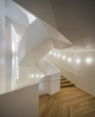Assolutamente. Non volevamo mimetizzarci in alcun modo con il linguaggio della casa. Il nuovo nucleo centrale di scale e ascensore con il lucernario integra le due architetture, dando ampio respiro alle zone nobili progetatte da Gaudí. Abbiamo scelto di rivestire le superfici del vano con uno stucco alla calce, per cui utilizzando una tecnica costruttiva dell’epoca, in un colore bianco che per contrasto sottolinei il valore dell’opera di Gaudí, senza creare continuità e allo stesso tempo indurre in confusione. Una sorta di cornice neutra che non fa altro che mettere in risalto Gaudí.