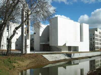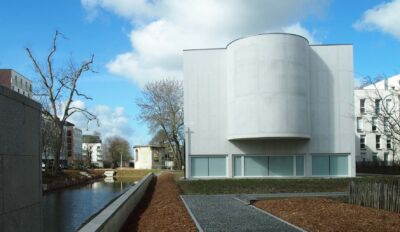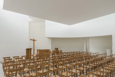 Nell’area di Saint-Jacques de la Lande, a sud della zona di espansione e consolidamento de La Courouze, l’11 febbraio 2018 è stata consacrata la prima chiesa costruita nella diocesi di Rennes da quarant’anni. E’ composta da un involucro squadrato di cemento bianco («compatto e sensibile» come lo ha definito l’autore) al cui interno è incastrata una forma cilindrica; il piano terra contiene un livello di servizi e uno spazio flessibile multifunzionale e al piano superiore si trova l’aula circolare per 140 persone, in cui la croce, illuminata con una luce radente laterale, è posta in uno dei vertici dell’involucro, in corrispondenza dell’interruzione del cilindro, che invece scherma lo spazio della scultura della Vergine e dalla fonte battesimale, illuminate dall’alto.
