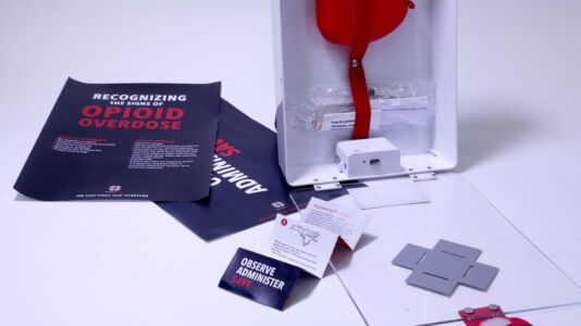 Uno specialista americano in medicina d’emergenza, Geoff Capraro, MD, MPH, si è avvicinato a un professore di disegno industriale, Claudia B. Rebola, alle prese con un progetto di ricerca in questo settore. Il suo progetto era guidato da principi di prototipazione rapida, contenimento dei costi, estetica e accessibilità. Il design presenta un pannello frontale chiaro in modo che gli astanti possano vedere facilmente il contenuto e la grafica, incluso un elemento a croce rossa per trasmettere il concetto di emergenza. La priorità dell’accessibilità viene concretamente attuata grazie alla realizzazione di involucri poco ingombranti che non presentano meccanismi di blocco, in quanto non dovrebbero esserci barriere a strumenti salvavita! Le unità sono state installate negli Stati Uniti, in luoghi pubblici e semipubblici del Rhode Island. RI DMAT, un’organizzazione senza scopo di lucro, sempre a Rhode Island, sta subentrando nelle operazioni di spedizione in altri Stati USA e in altri Paesi. Le persone impegnate nel recupero dalla dipendenza e nella formazione lavorativa saranno retribuite per eseguire il montaggio leggero e la spedizione dei NaloxBox, dimostrando chiaramente che il recupero e vite più produttive sono possibili, se solo le persone che lottano con la dipendenza ricevono una seconda possibilità. I NaloxBox possono essere dotati di componenti elettronici che segnalano il proprietario di una unità quando il cabinet è stato aperto e, se lo si desidera, altri numeri incluse le unità di risposta. La notifica di testo consente al proprietario del NaloxBox di rispondere alla richiesta di emergenza e di reimmagazzinare l’armadietto. NaloxBox mira a salvare vite umane una scatola per volta. Quando il sovradosaggio da oppiacei compromette la consapevolezza e controlla il respiro, possono verificarsi lesioni permanenti e morte. Le vittime in queste situazioni non possono aiutare se stesse. Il loro salvataggio dipende dalla buona volontà dei vicini. NaloxBox fornisce gli strumenti essenziali e l’addestramento in modo che i buoni samaritani possano realizzare salvataggi tempestivi ed efficaci.