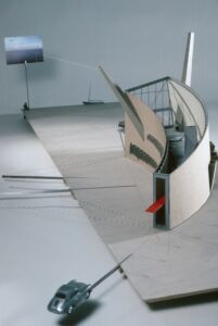 È così che nel tempo l’architettura piuttosto che essere costruita in senso tradizionale viene progressivamente svelata nelle sue diverse possibilità di afferire alla nostra esistenza da diverse angolature, come se si trattasse di scenografie o d’installazioni artistiche. La guerrilla art di Vito Acconci (1940-2017) è stata, infatti, un altro punto di riferimento. Con quest’ultimo condividono spregiudicatezza e coraggio nello spingere l’attenzione del pubblico oltre qualsiasi aspettativa, lavorando per zone circoscritte che rielaborano le modalità di convivenza nello spazio urbano, certa nevrastenia, i rituali più noti, mentre loro stessi, nel 1990, vengono descritti da Georges Teyssot come «specialisti in body building, squash, gare automobilistiche, baseball, igiene, androginia, diffondersi delle paranoie e delle patologie di ogni tipo, disegno industriale americano, demografia, uniformi, etichetta, disegni anatomici, apparati chirurgici e sonde».