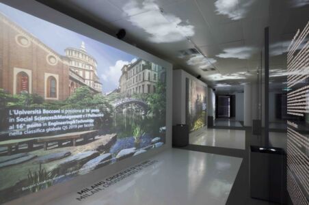 Leadin’Lab – Leadership Design and Innovation Lab del Politecnico di Milano, partner scientifico di “Genio e Impresa”, ha saputo dare evidenza e consistenza qualitativa e quantitativa al fenomeno: i numeri e i dati più che convincenti trovano un’apoteosi spettacolare nell’installazione finale: una gentile e sognante visione notturna di Milano che appare brandeggiare, grazie al comando di un tavolo/volante/timone, su uno schermo concavo e permette al pubblico di solcare a volo di uccello i cieli della città e vedere materializzare di fronte agli occhi i nomi dei protagonisti di questa vicenda che lega genio ed impresa, vicenda che tanto straordinaria ed efficace è, quanto sussurrata ed in fondo poco visibile, in tipico stile meneghino e lombardo.