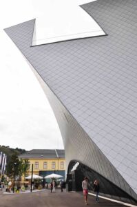 Uscendo verso la sponda del fiume e riguardando il bel volume incurvato, si rafforza la sensazione di un edificio che, per diventare il nuovo simbolo della città, è disposto a sacrificare tutto alla forma scultorea, al corpo elegante. Basterà questo per diventarne anche il monumento?