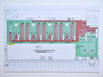 Sono state previste tre fasi d’intervento. La prima, con la realizzazione di quattro moduli (ciascuno composto da due unità di degenza e un’unità di servizi sanitari), per un totale di 53 posti letto, con i servizi dedicati ed aree di supporto per lo svolgimento in loco di tutta l’attività sanitaria diagnostica e terapeutica. A seguire saranno attuate la fase 2 (termine previsto 12 aprile) e la fase 3 (termine previsto 30 aprile) per il completamento delle altre unità operative. La nuova struttura sarà quindi a pieno regime dal 30 aprile (quasi un mese dopo la chiusura dei due ospedali di Wuhan); di fatto un controsenso rispetto alla curva dei contagi che, secondo gli ultimi studi, in Lombardia dovrebbe azzerarsi a partire dal 22 aprile. Nonostante la virtuosità di questa iniziativa messa in campo a tempi di record rischiamo di ritrovarci, questo sì in pieno stile italico, con un’opera pubblica già vecchia appena ultimata.