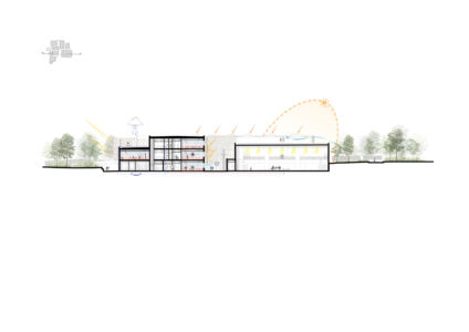 L’idea di scuola sviluppata dal progetto reinterpreta gli spazi didattici. La disposizione dei diversi corpi di fabbrica caratterizza gli spazi esterni, definendone la destinazione. Tale strategia permette un dialogo forte con la città e la comunità locale, rileggendo il ruolo della scuola come vero e proprio centro civico. Efficienza energetica e sostenibilità ambientale sono temi centrali del concept, per gli standard di un edificio a consumo di energia quasi zero, sfruttando l’energia rinnovabile.