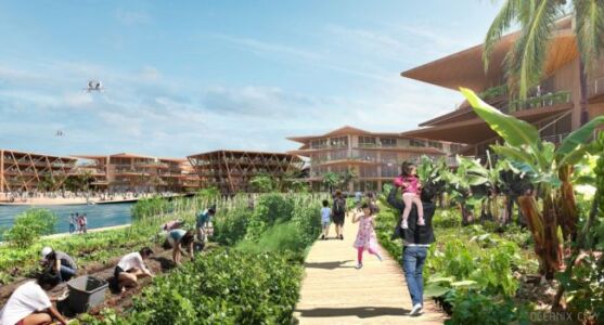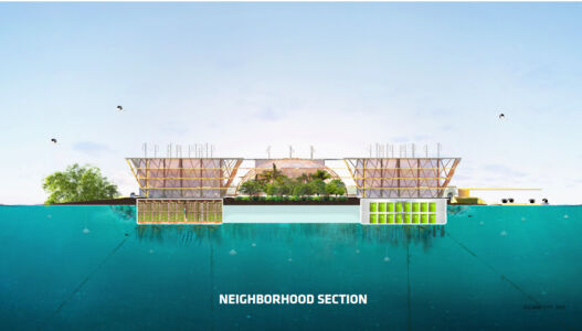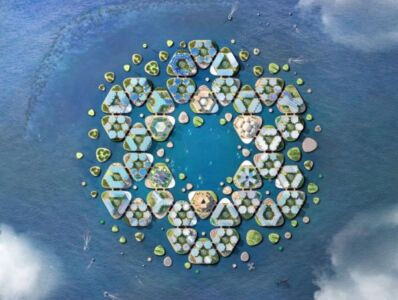 Sviluppato da Bjarke Ingels Group, il progetto immagina una vita sulle acque a prova di uragani e alluvioni. L’idea di una città galleggiante è stata sviluppata nell’ambito dell’Agenda urbana dell’Onu-Habitat ed è stata realizzata in collaborazione con il Center for Ocean Engineering del Mit, Mobility in Chain e Sherwood Design Engineers. La proposta cerca di rispondere alla minaccia dei cambiamenti climatici proponendo la creazione della prima comunità galleggiante resiliente e sostenibile al mondo. È una città modulare, formata da cluster d’isolette esagonali unite tra loro in gruppi di sei, che possono dare vita a un villaggio di 12 ettari adatto a ospitare fino a 1.650 residenti. Si tratta di un’architettura additiva che può crescere, trasformarsi e adattarsi nel tempo, partendo da un quartiere di 300 abitanti fino a una città di 10.000. Ogni singolo modulo verrebbe costruito a terra e poi portato in mare, per essere ancorato al fondale: l’obiettivo è quello di realizzare strutture in grado di resistere anche a uragani di categoria 5, con venti superiori a 250 km/h.