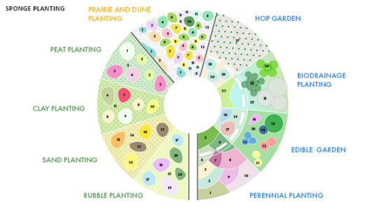 La città olandese ha iniziato a fare i conti con il clima che cambia e l’innalzamento delle acque da oltre una decina di anni. È dotata del Rotterdam Climate Proof, ha realizzato bacini sotterranei di stoccaggio delle acque in eccesso, ha inventato le piazze d’acqua; ora sta studiando il modo in cui la vegetazione può migliorare la resilienza urbana secondo il comportamento di una spugna: assorbire rapidamente l’acqua, trattenerla temporaneamente e trasferirla gradualmente nel sottosuolo. È nato da queste premesse Sponge Garden, un progetto dello studio De Urbanisten, che ha lavorato con l’organizzazione no-profit Voedseltuin. Nel giardino-spugna si sta testando il funzionamento delle nuove proposte di raccolta, conservazione e riutilizzo dell’acqua piovana in un ambiente naturale. Per questo scopo vengono condotti esperimenti sulla composizione del terreno, sui tipi d’impianto e sulle tecniche di assorbimento.