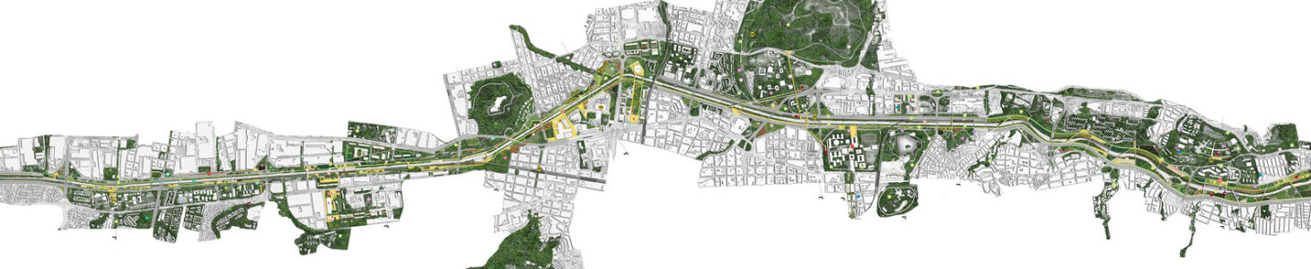 Il posizionamento ipogeo delle strade a scorrimento veloce ha consentito la realizzazione di un sistema di spazi pubblici che ha finalmente permesso ai vicini quartieri un serrato dialogo con il fiume. Inoltre, la collocazione di due nuovi ponti pedonali ha permesso il rapido collegamento fra le sponde. Con tale operazione, una delle aree urbane più inquinate e rumorose si è trasformata in un polmone verde di attrazione sociale, grazie anche ad un insieme di attività ricreative e commerciali e ad un grande parco giochi.