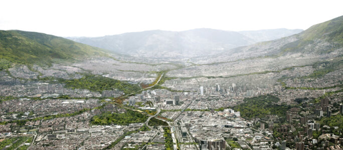 Dai primi anni ’50 del secolo scorso, con la presentazione del Plan piloto di Paul Lester Wiener e Josep Lluis Sert, Medellín inizia a cambiare significativamente il rapporto con il suo fiume, spina dorsale della Valle de Aburrá. Tra le due pendici della valle, da allora la città si è sviluppata molto più velocemente di quanto previsto da Sert, maestro architetto e urbanista spagnolo. Oggi è per estensione e numero di abitanti la seconda città colombiana: una megalopoli ancora caotica e inquinata, nonostante i notevoli miglioramenti degli ultimi anni.