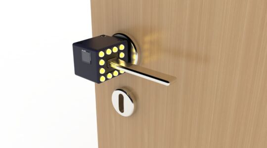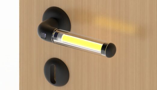 La Maniglia Anti-Covid è un dispositivo ideato inglobando una lampada UV-C in grado di sterilizzare la superficie di contatto, neutralizzando eventuali agenti patogeni come virus e microbi depositati sulla stessa. Le “lampadine” presenti in questi dispositivi emettono raggi ultravioletti UV della categoria C (per questo detti UV-C, presenti anche nella luce solare) caratterizzati da una lunghezza d’onda molto corta, solitamente circa 2537 Angstrom (254 nm). Il concept è stato pensato in due versioni, la prima con una sorgente di luce puntiforme integrata nel blocco di apertura e radiazione con fascio laterale, la seconda direttamente integrata sul punto di presa con emissione radiante per l’intera lunghezza del cilindro. Nel primo caso la maniglia è pensata in metallo, nel secondo può essere realizzata con cilindro in materiale polimerico trasparente. Il dispositivo si aziona ad ogni apertura della porta ed è alimentato a batteria.