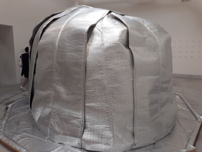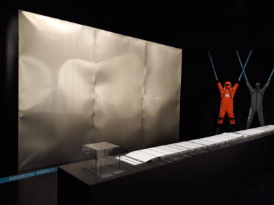 Al contempo non si possono non apprezzare gli sforzi di chi, lo spazio della sala data, presenti progetti con rigore, eleganza ed efficacia, come il giardino biopolitico dello studio Viganò ricco di modelli, documenti e perfino di disegni/arazzo, o l’Antartic Resolution ove il fragore del metallo vibrato suona come una campana a morte sui destini del mondo, è vero, ma si presenta con la forza di una parete metallica che dialoga con l’esploso di un tomo offerto alla libera consultazione, sanificazione inclusa.