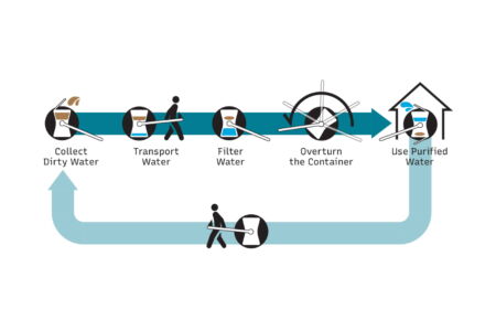 Hamon è un sistema mobile progettato per contenere, trasportare e purificare l’acqua per le comunità che non hanno accesso diretto alle risorse idriche, migliorando le loro vite e proteggendo i bambini in condizioni di povertà. Il sistema, non essendo alimentato da energia elettrica né attrezzato con tecnologie dedicate, può essere prodotto a basso costo e il suo utilizzo è sostenibile in qualsiasi ambiente. Il sistema di filtraggio è costituito da materiali facilmente reperibili, ovvero carbone attivo, ghiaia e tela. L’asta nera che penetra attraverso il contenitore è realizzata in resina, un materiale tenace, flessibile e ad alta resistenza. In tal modo è possibile irrobustire il contenitore mantenendolo sempre in posizione orizzontale quando il dispositivo è in pendenza. A livello di business plan, l’intenzione del designer è quella di collaborare con produttori di acqua minerale, come ad esempio Volvic, per devolvere il 10% del profitto derivante dalle vendite al finanziamento delle attività di produzione e trasporto di Hamon. Questa operazione consentirebbe d’intervenire attivamente in progetti concreti d’innovazione sociale, migliorando al tempo stesso, agli occhi dei consumatori, la reputazione delle imprese in termini di gestione responsabile delle attività che possono avere un impatto sociale, ambientale ed etico sulla società e sul territorio.