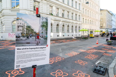 In questo modo, la città spera di ridurre drasticamente l’inquinamento ed il surriscaldamento dell’intero quartiere (circa del 30%), incentivando allo stesso tempo l’uso dei mezzi pubblici e delle biciclette (elettriche e non), oltre ai sistemi di sharing a due e quattro ruote. Le trasformazioni a Favoriten sono accompagnate da un’estesa campagna d’informazione. Una prima sperimentazione pilota per il Supergrätzel del Volkerviertel, nel secondo distretto, ha prodotto l’anno scorso risultati confortanti dal punto di vista della partecipazione attiva degli abitanti, culminata in un laboratorio svolto direttamente in strada che ha usato l’asfalto quasi come una lavagna su cui disegnare i nuovi usi possibili del suolo.