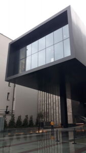 AKM ha innescato la riqualificazione dell’intera area affacciandosi su piazza Taksim con un grande fronte trasparente che rende visibile la sala principale interna, un grande volume semisferico rosso rivestito in ceramica “made in Turkey”. Il progetto è dello studio Tabanlıoğlu Architects, con a capo Manolo Tabanlıoğlu, figlio dell’architetto che disegnò per primo l’edificio nel 1956, demolito nel 2018. Con una modalità che ha pochi precedenti nella storia dell’architettura, la staffetta generazionale e familiare fra gli architetti del centro culturale Atatürk ci consegna un complesso dalla solida impronta urbana, dal linguaggio aggiornato ma in continuità con il passato. Ne è testimone l’elegante scala elicoidale nell’atrio che, lascito del vecchio progetto e fiore all’occhiello del nuovo, si ripropone con la stessa impronta modernista, anche se oggi segnata da una certa pesantezza e monumentalità che la scelta delle ampie superfici in beton brut rende un poco greve.