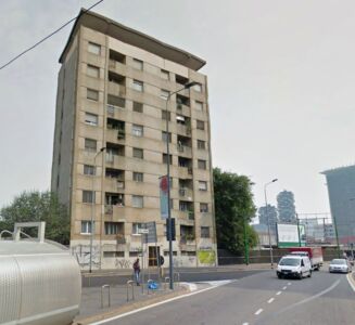 Tra questi, segnalo un caso preoccupante. È l’edificio situato in fregio a via Giuseppe Ferrari, sul bordo dei binari ferroviari dello scalo Garibaldi, subito dopo la stazione. Progettato dal gruppo di autori della stazione (Giulio Minoletti, Eugenio Gentili Tedeschi, Mario Tevarotto), è un edificio notevole per la volumetria coraggiosa, segnata dai tagli delle lunghe finestre a nastro e caratterizzata dall’aggetto rispetto al marciapiede. Degradato da molti anni, è stato “risanato energeticamente”, cioè rivestito di “cappotto termico”, a sua volta protetto da pannelli di diverse tonalità di grigio ed è stato “violentato” da imponenti serramenti scuri.