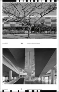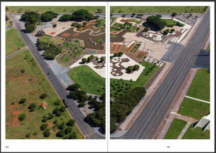 Un succinto indice, anch’esso in portoghese e inglese, riporta le fotine in bianco e nero dandone una descrizione minima con luogo, data e autore. Gli scatti sono stati realizzati da cavalletto, elicottero e drone, questi ultimi in particolare per restituire fotopiani di grande interesse, come l’infrastruttura-stazione: l’opera forse più difficile, meno virtuosistica eppure totalmente geniale di Lucio Costa. Così, questo volumetto, che raccoglie opere dal Catetinho di Niemeyer (1956) al B Hotel di Weinfeld (2017), potrebbe essere parte di un manifesto di radicalismo fotografico per almeno tre ragioni. Principalmente, perché gli scatti hanno dietro un lavoro temporalmente lungo, fatto di pause, riflessioni e ritorni in loco – stabilendo in questo modo una differenza di produzione a monte del lavoro, strutturalmente diverso da quello dei fotografi globali paracadutati per la durata di un servizio. In secondo luogo, per la qualità intrinsecamente altissima delle immagini – sia dal punto di vista compositivo delle inquadrature che da quello delle scelte cromatiche. Infine, per la qualità di stampa, di buon livello ma non eccelsa, che paradossalmente dimostra come il prodotto finale non ne soffra, contribuendo in questo modo a un’interpretazione estrema o, appunto, radicale, della fotografia contemporanea che siamo abituati a vedere magnificata da schermo o da light-box (cfr. leonardofinotti.com).