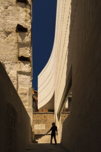 In Francia, curiosamente, l’incultura di certe giurie di concorsi e premi porta spesso a laureare progetti di scarsa qualità, che rispondono alle esigenze di una nuova doxa, con una malintesa parvenza di sostenibilità. È quindi straordinariamente gratificante che per questo 40° anniversario dell’Équerre d’argent le riviste “AMC” e “Le Moniteur” abbiano riunito una giuria composta principalmente da architetti praticanti, tutti ex vincitori del premio, sotto la presidenza del professor Jacques Lucan. Nel presentare il progetto – scelto all’unanimità – durante la cerimonia di premiazione, Gilles Perraudin, grande talento dell’architettura francese, ha sottolineato “La strana e pacifica bellezza che emana da quest’opera. Strana nella sua potente presenza in città, ma pacifica nell’armonia luminosa degli spazi interni”. Ha rilevato “I sottili riferimenti storici: Scarpa, Kahn, che vengono letti ma non imposti. Una trasposizione, per così dire, in uno spazio indicibile con una dimensione spirituale emozionante”. Perraudin ha riportato il giudizio complessivo della giuria, che testimonia l’eccellenza di un progetto caratterizzato “dall’intelligenza e dalla finezza dell’inserimento urbano in un quadro normativo rigoroso, nel rispetto dei monumenti caratteristici della storia della città, negoziando con scavi archeologici ed edifici civili intoccabili, in un sito di difficile accesso”. Il premio per l’opera prima è andato invece a un ponte pedonale realizzato da Nu Architecture & Ingénierie a Brides-les-Bains, in Savoia.