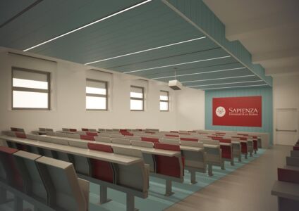Il progetto prevede la ristrutturazione di sette aule, sei al Policlinico e una nella Città universitaria. Le aule sono caratterizzate da una continuità figurativa che ne garantisce la riconoscibilità. Oltre a una rinnovata immagine, le aule avranno un adeguato comfort acustico e illuminotecnico.