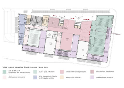 Il progetto prevede un edificio con impostazione a pettine caratterizzato da un’alternanza di volumi costruiti e serre bioclimatiche. L’edificio comprende varie funzioni: una struttura didattico-congressuale con annessa un’aula magna di almeno 400 posti, spazi più piccoli dedicati alla didattica, spazi per eventi, laboratori scientifici e di ricerca, uffici e aree flessibili per start up.