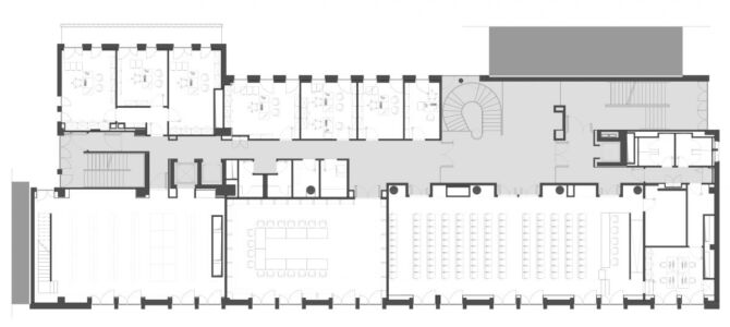 L’edificio esistente, collocato nella porzione della Città universitaria della Sapienza prospiciente a viale Regina Margherita, ha una forma complessa e articolata. Gli obiettivi principali del progetto di riqualificazione sono l’efficientamento energetico, il miglioramento sismico e la riorganizzazione funzionale. L’involucro edilizio viene completamente riprogettato mentre al suo interno le varie funzioni presenti (archivi, uffici, segreterie) vengono ridistribuite secondo un nuovo layout flessibile e adattabile anche ad eventuali esigenze future.