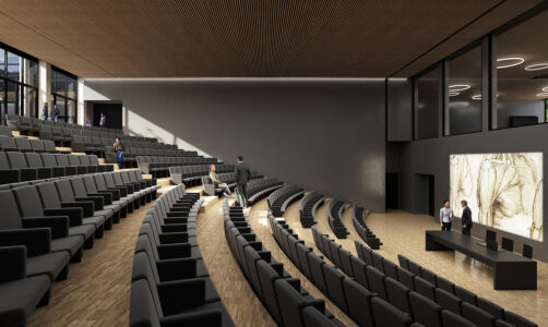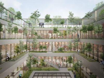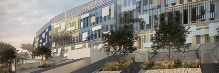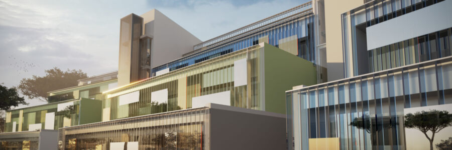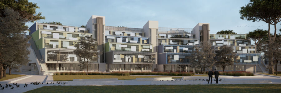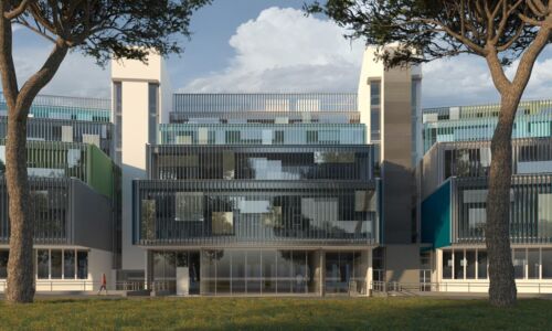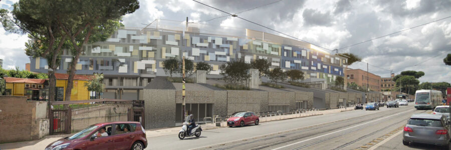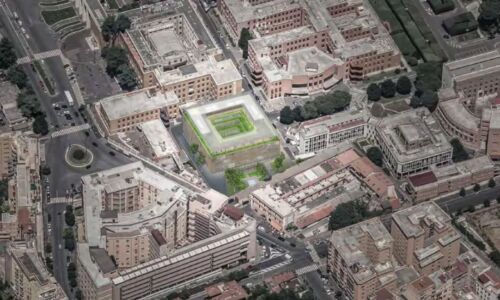 Immagine di copertina: render dell’edificio della didattica dell’Università Campus biomedico (Labics, Topotek 1)